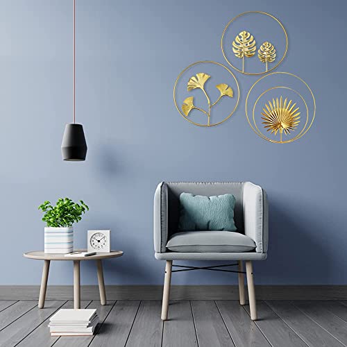 3 Pezzi Decorazione Parete in Metallo, Ornamenti Parete Rotondi, Decorazione Parete Rotonda in Ferro, Sculture Parete Con 4 Chiodi Senza Cuciture per Decorare Soggiorno, Camera Letto, Ufficio (Oro)