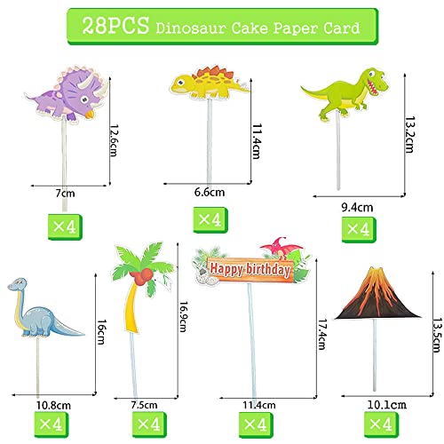 MATERIALI DI ALTA QUALITÀ: realizzati in cartoncino di alta qualità con stuzzicadenti per uso alimentare, colori audaci, attraenti e resistenti. I dinosauri sono realizzati in resina di alta qualità, sicura e non tossica, e possono essere utilizzati anche come piccoli giocattoli.