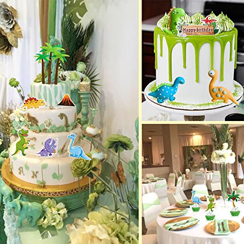 La confezione include: 28 decorazioni per torte, 3 dinosauri in resina, 3 alberi di puntini, 3 alberi di cocco. Dinosaur Happy Birthday Cake Topper è adatto per feste a tema dinosauri, feste nella giungla, rendi la tua festa piena di atmosfera a tema cinematografico.