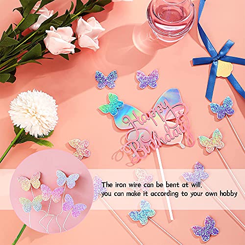 16 pezzi decorazione per torta di a forma di farfalla sfumata con glitter happy birthday, accessori per torta di buon compleanno rosa, topper colorato per cupcake per decorazione di ragazza