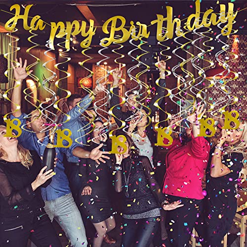 17 Pezzi Decorazioni per Feste di Compleanno Buon Compleanno Banner Appeso soffitto Spirale Decorazione Decorazioni a Soffitto Lamina per 18 Anni Festa di Compleanno Decorazioni per Donna Uomo