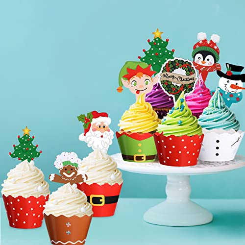 96 Pezzi Decorazioni per Feste di Natale Topper per Torte di Natale Wrapper Babbo Natale Albero di Natale del Pinguino dell'Elfo della Renna del Pupazzo di Neve del Pan della Corona di Natale