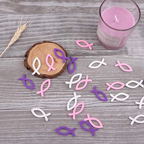 QYY 108 Pezzi Decorazioni a Forma di Pesce in Legno, Bambino Battesimo Santo Comunione,Matrimoni Battesimo (Viola-Rosa - Dimensioni Miste)