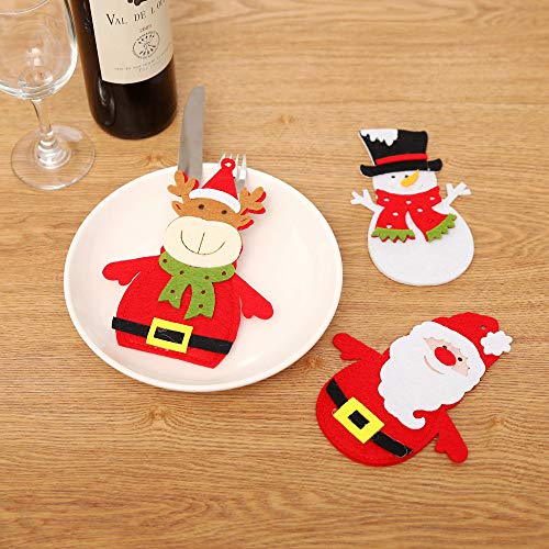 8 Pezzi Decorazioni per la Tavola di Natale, Porta Posate Natalizie Cena, Babbo Natale, Pupazzo di Neve, Renna, Gnomo Cappelli per Bottiglie Tasche Posate per Forchetta Cucchiaio Decorazione
