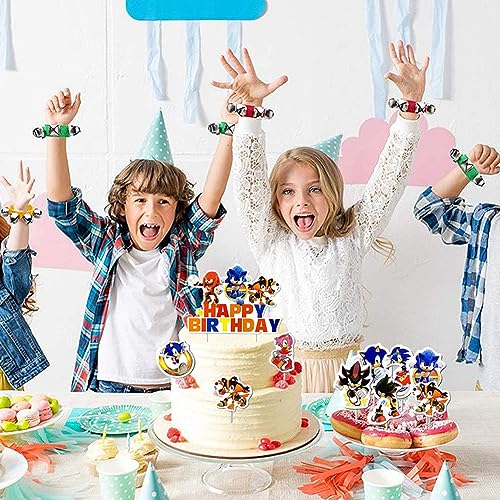Multifunzionale: Le decorazioni torte Sonic non solo possono essere utilizzate per decorare torte di compleanno, ma possono anche essere utilizzate per decorare cupcake, muffin, macedonie, ecc. È adatto per feste di compleanno per bambini e feste a tema cartoni animati.
