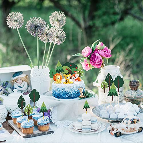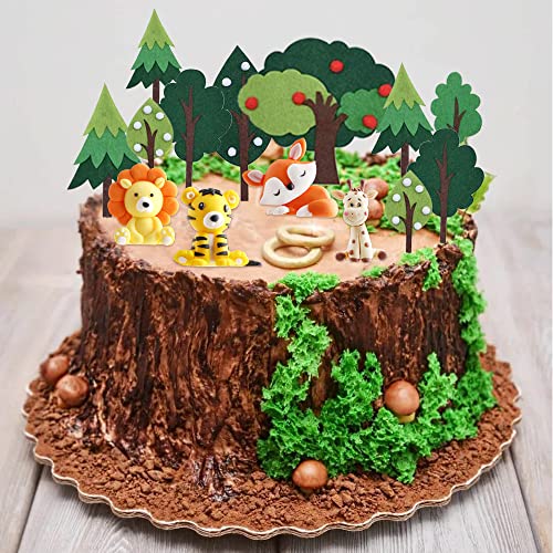 14 Pezzi di Decorazioni per Torte Giungla, 4 Pezzi di Animali, 10 Pezzi Albero, Accessori per Torte per Feste a Tema Foresta per Bambini, Decorazioni per Feste di Compleanno per Ragazze e Ragazzi