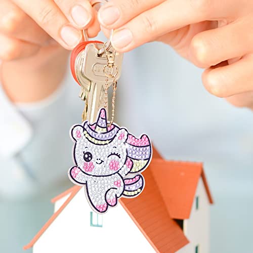 5 Pezzi Diamond Painting Portachiavi Unicorno Fai da Te + 6 Pezzi Adesivi per Bambini, 5D Painting Art Pendant Kit Doppia Faccia, Mosaico Painting Strass Ciondolo Full Drill Keychain, Unicorno