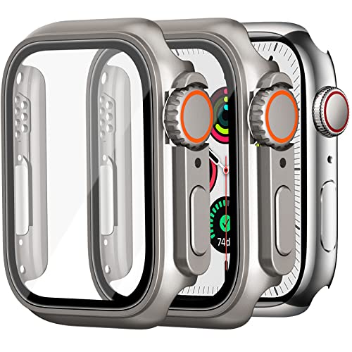 2 Pezzi - Dilhvy Cover per Apple Watch Series 6/5/4/SE 2 /SE 44mm Pellicola Protettiva, iWatch Rigida PC Custodia Protezione Viso Look Like Ultra con Pellicola in Vetro Temperato per Donne Uomini