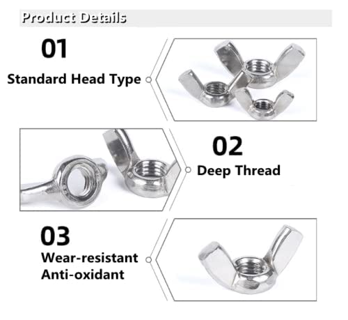 ALTA QUALITA '- Le viti a nastro DIN315 sono in acciaio inossidabile di alta qualità. La resistenza dell'acciaio inossidabile offre una buona resistenza alla corrosione in ambienti sconnessi come ad alta temperatura, freddo e aree ad alta umidità. Hanno resistenza superiore alla ruggine e l'eccellente resistenza all'ossidazione, che può garantire un lungo impiego