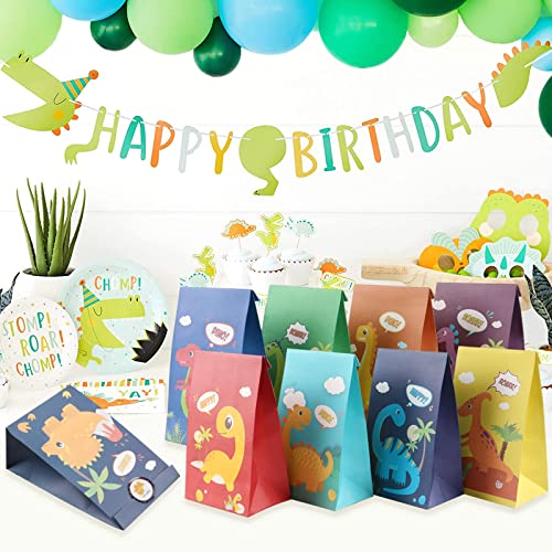 12 Pezzi Dinosauri Sacchetti Regalo Compleanno Festa Buste Regalo Carta Sacchetti Carta con Adesivi Dinosauri Party Sacchettini Compleanno Bambini