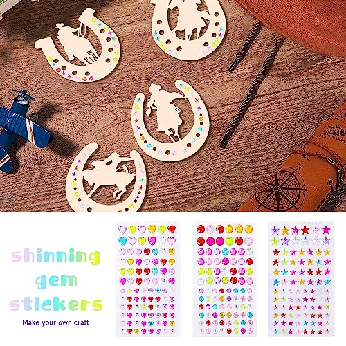 Set di Ferro di Cavallo:La confezione contiene 24 ferro di cavallo in legno non trattato,un set di 12 penne colorate,un corda di canapa fine,3 fogli di adesivi con strass,per creare ornamenti creativi secondo i tuoi desideri.