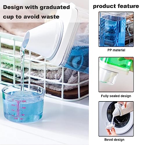 Materiali di buona qualità: Realizzato in resistente materiale PP, questo dispenser di detersivo per bucato è antiruggine e riutilizzabile, garantendo un uso durevole e duraturo per le tue esigenze di bucato.