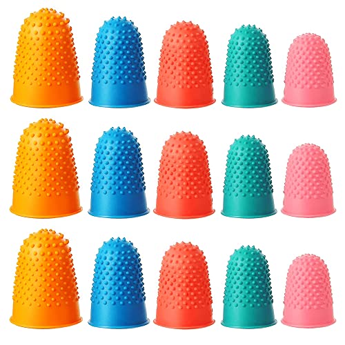 15 Pezzi Ditali in Gomma, Protezioni per Dita in Gomma, Protezione Dita Finger, Riutilizzabile Dita Gomma Tappi per Contare, Ordinare, Scrivere, Compiti, Colla a Caldo e Giochi Sportivi (5 Colori)