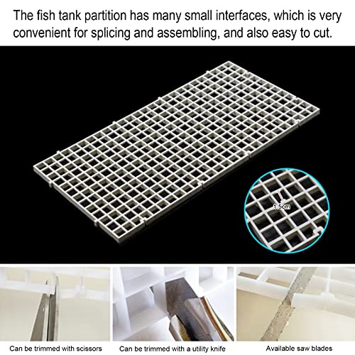 MATERIALE PREMIUM: non devi preoccuparti della qualità dell'acqua, il divisore della griglia dell'acquario non danneggerà i pesci. Realizzato in plastica sicura per PC di alta qualità. Il sistema di circolazione dell'acqua nell'acquario presenta vantaggi non solo come scudo termico, ma anche come piastra filtrante inferiore.