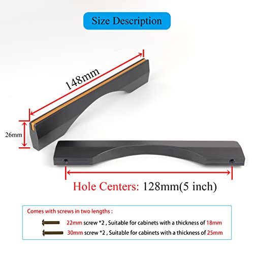 FACILE DA INSTALLARE: Hai solo bisogno di un trapano a mano per installare da solo la maniglia della porta dell'armadio. La distanza centrale tra i due fori per le viti della maniglia dell'armadio è di 128 mm (5 pollici), Viene fornito con due diverse lunghezze di M4-Viti, le viti da 22 mm sono adatte per porte di 18 mm di spessore e le viti da 30 mm sono adatte per porte di 25 mm di spessore.