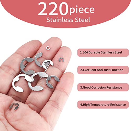 220 Pezzi E-clips Anello Kit, Esterna Anello di Sicurezza, Snap Anello di Sicurezza Acciaio Inox - 1.5/2/3/4/5/6/7/8/9/10mm
