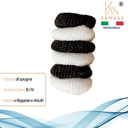 Confezione: comprende 50 Mini Elastici Bianchi e Neri di spugna cosi come da foto, adatti sia a bambine, ragazze che donne adulte, in numero sufficienti per soddisfare le esigenze di tutti i giorni in tutte le situazioni.