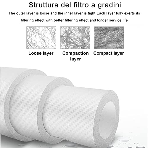 Alta qualità: il filtro antiparticolato in polipropilene da 5 micron può rimuovere ruggine, sporco, sabbia e sedimenti superiori a 5 micron.