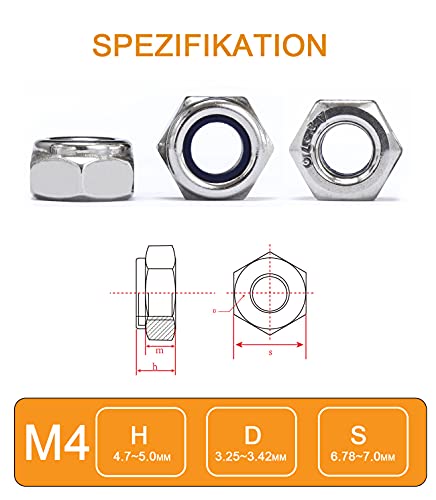 100 pezzi di dadi esagonali DIN 985 M4 controdado, dadi standard A2-70 dado fermo in acciaio inox Dado autobloccante in acciaio inox dadi esagonali