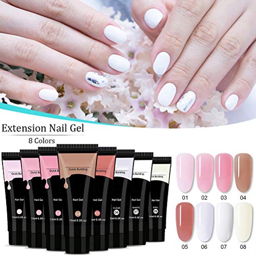 17 pezzi Nail Gel Kit, Kit di estensione delle unghie in gel, Set di colla per cristalli Set per principianti, 8 colori di gel UV, 100 stampi per lestensione delle unghie, professionale o domestico