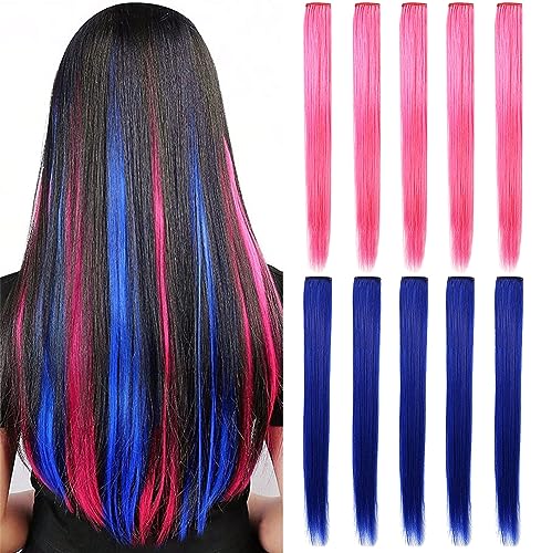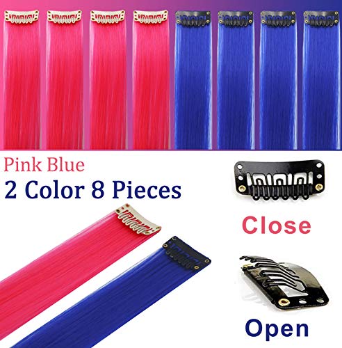 ❤Packgae: 8 pezzi-blu, rosa. 1pc con 1 clip, lunghezza di 21 pollici, 2 colori opzionali, facile da indossare e rimuovere, morbido e naturale, cambia il tuo look in meno di 5 minuti