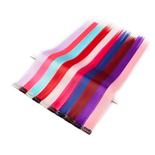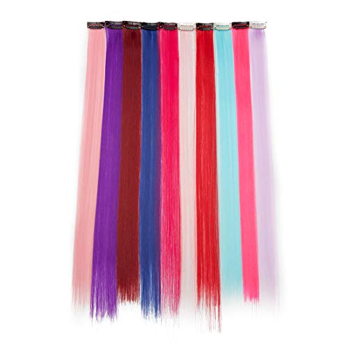 10 Pezzi di Estensioni dei Capelli Sintetico Lungo Parrucchino Partito Mette in Evidenza Clip Colorate Nelle Estensioni dei Capelli 55cm Dritto Multi colore