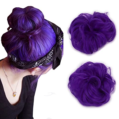 2 pezzi estensioni dei panini sintetici scrunchies per capelli disordinati posticci in fibra sintetica ciambella updo coda di cavallo parrucchino (viola sotto il sole/blu quando al coperto)