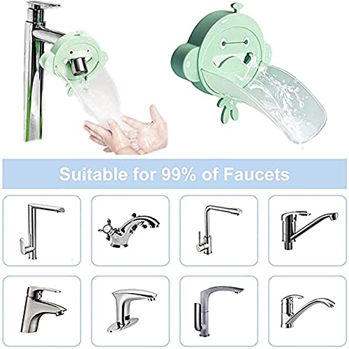 【Uscita dell'acqua curva】 L'estensione del rubinetto per bambini è dotata di un'uscita dell'acqua curva, che può ridurre gli schizzi d'acqua e non bagnare i vestiti a causa dell'uscita dell'acqua troppo veloce.