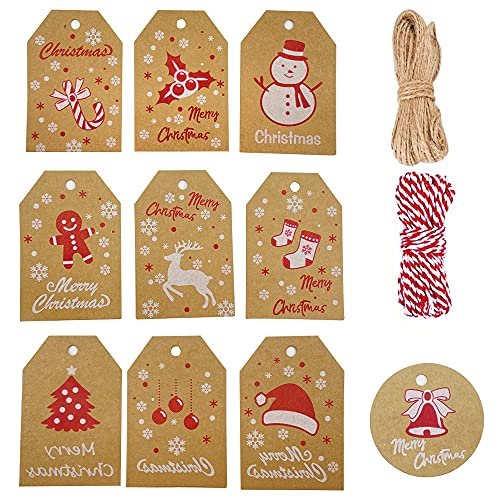 100 Pezzi Etichetta di Carta Kraft di Natale Etichetta Regalo di Carta Kraft Etichetta di Imballaggio per Il Giorno di Natale con Cordino per Confezione Regalo di Natale (10 Stili)