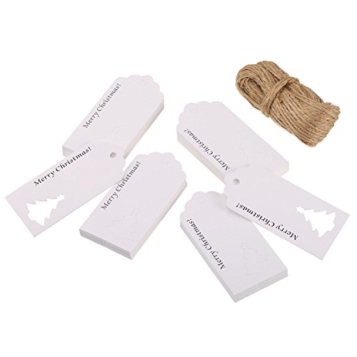 100 Pezzi Etichetta di Carta Regalo Tag Mestieri da Appendere Etichetta Concavo di Design a Albero di Natale con 30 Metri Spaghi per Natale Matrimonio Regalo Avvolgimento (Bianco)