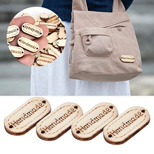 150 pezzi Etichette fatte a mano Etichetta Bottoni artigianali in legno Abbellimenti Ornamenti Bottoni a forma ovale 2 fori per artigianato Cucito Decorazione di abbigliamento