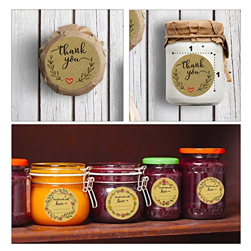 QUANTITÀ SUFFICIENTE: Adesivi Decorativi per Regali Fatti in Casa include 2 rotoli di adesivi, ogni rotolo ha 500 etichette rotonde di carta kraft, ci sono 1000 adesivi in totale, sufficienti per il tuo uso quotidiano, puoi attaccare torte e marmellate fatte in casa, biscotti da dessert, sacchetti a chiusura lampo o buste . manda i tuoi migliori auguri.