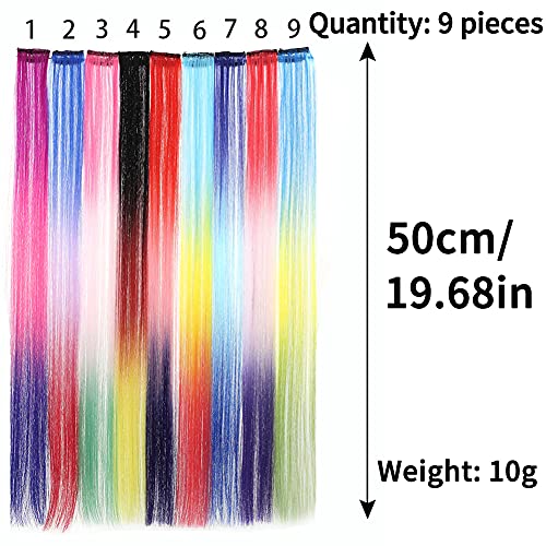 9 Pezzi Extension Capelli Colorati Clip Extension Capelli Extension Colorati Capelli Ciocche Colorate per Capelli Clip di Estensioni dei Capelli Colorate per Feste Cospaly Party 50cm