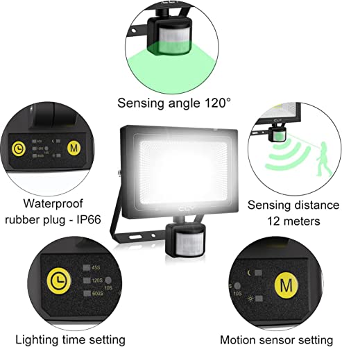 【Super Luminoso & Risparmio Energetico】CLV 35W faretto led da esterno con sensore di movimento, 3000LM, bianco freddo 6500K, adotta l'ultimo chip integrato e fornisce un'illuminazione più brillante. Con un angolo del fascio di 120°, i proiettori a LED creano un'illuminazione ampia e piacevole. Risparmia l'80% in più di energia rispetto ad altri proiettori, risparmiare sulla bolletta elettrica.