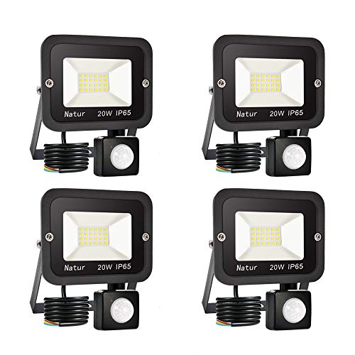 4 pezzi - Faretto con Sensore di Movimento 20W Luce di Sicurezza Impermeabile IP65, Faro LED Esterno con Sensore, 1700LM Bianco Caldo 3000K, Faretti LED per Giardino, Corridoio, Terrazza, Patio