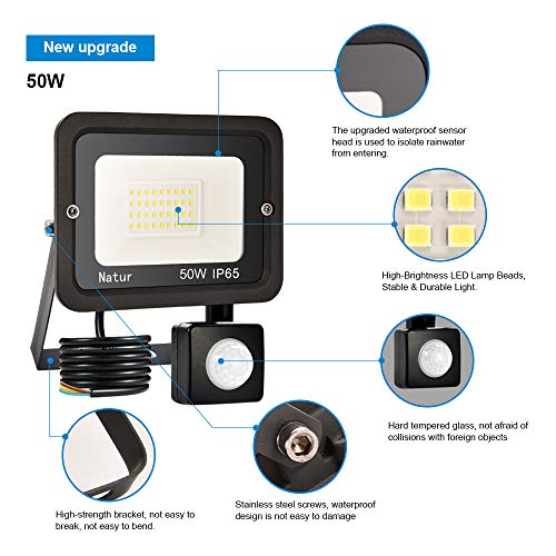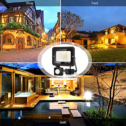 2 pezzi - Faretto con Sensore di Movimento 50W Luce di Sicurezza Impermeabile IP65, Faro LED Esterno con Sensore, 4250LM Bianco Caldo 3000K, Faretti LED per Giardino, Corridoio, Terrazza, Patio
