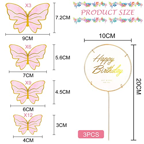 31 Pezzi Farfalla Cupcake Topper, Farfalla Decorazione Torta di Compleanno Decorazioni per Torte con Farfalle Cake Topper Farfalla,Per Decorazione della torta Baby Shower (Rosa)