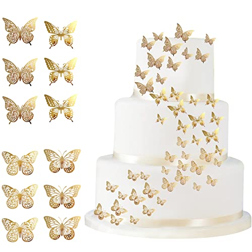 48 Pezzi Farfalla Cupcake Topper Decorazioni, VEGCOO Topper Torta di Compleanno Decorazione da Parete, Farfalla Dessert Topper per Feste di Famiglia, Baby Shower, Anniversario di Matrimonio