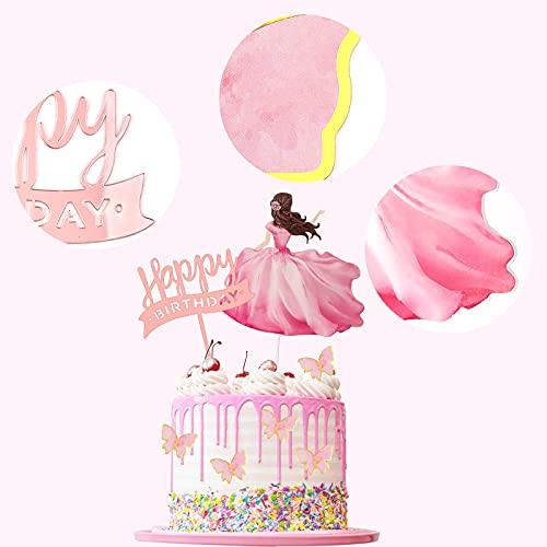 AIEX 56 Pezzi 3D Farfalla Decorazione Torta Farfalla Cupcake Topper con Scelte per Torta Ragazza Rosa e Acrilico Decorazione Buon Compleanno Festa Compleanno Ornamenti Torta Nuziale