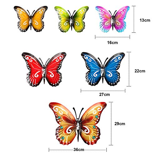 6 Pezzi Farfalla in Metallo Arte della Parete Farfalle in Metallo Scultura da Parete con Farfalla da Appendere a Parete Ispirata in 3 Misure per Interno e Esterno Decorazione Domestica, 6 Colori