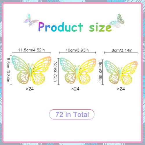 72 Pezzi Farfalle Decorative 3D Farfalle Adesivi Murali Colore 3 Dimensioni, Adesivi Decalcomanie Decorazioni Vuote Murali Murali Feste Matrimoni Toppers per Torte (Colorato)