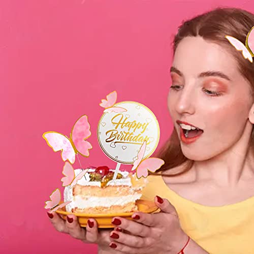21 Pezzi Rosa Farfalle Decorative per Torte, Happy Birthday Decorazioni Torta, Cupcake Topper Decorazioni per Feste di Compleanno, Matrimoni, Decorazione da Parete