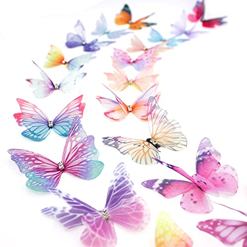 Haoh 50 Pezzi Farfalle 3D Organza Tessuto Farfalla Sfumate Colore Farfalla Traslucida in Chiffon Adesivi da Parete per Decorazione Della Parete Fai da te Vestiti dei Gioielli del Copricapo Artigianato