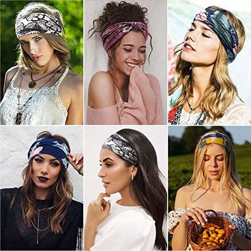 4 Pezzi Fasce Per Capelli Donna,Kavya Larga Fascia Capelli Elastici Stampa Leopardata Boho Alla Moda Stampa Floreale Accessori Capelli Per Lavoro Quotidiano Yoga(G)