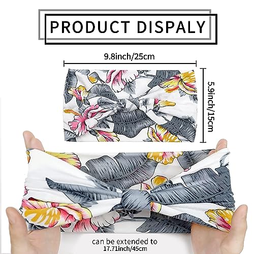 4 Pezzi Fasce Per Capelli Donna,Kavya Larga Fascia Capelli Elastici Stampa Leopardata Boho Alla Moda Stampa Floreale Accessori Capelli Per Lavoro Quotidiano Yoga(B)