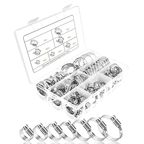 60 Pezzi Fascette Metalliche Stringitubo, Fascetta Stringitubo Regolabili Acciaio, Adatto per Piscine, Cavi, Tubi, Tubazioni del Carburante, Rubinetti Domestici, etc(8-38mm)
