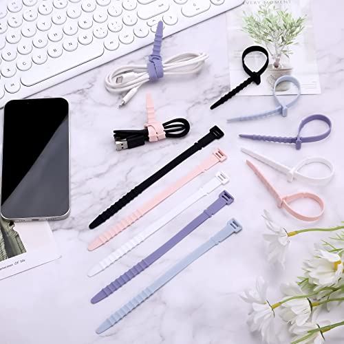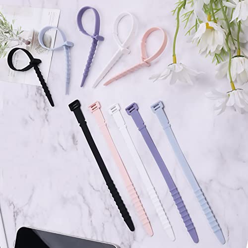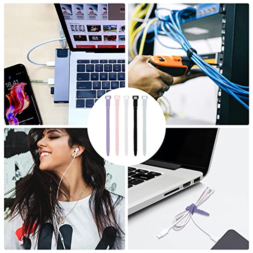 20 Pezzi Fascette per Cavi Riutilizzabili, 18cm Fascette per Cavi Silicone Cinghie Silicone Elastiche Cable Ties Stringi Cavi per Cavi di Ricarica Cavi USB Auricolari Penne (5 Colori)