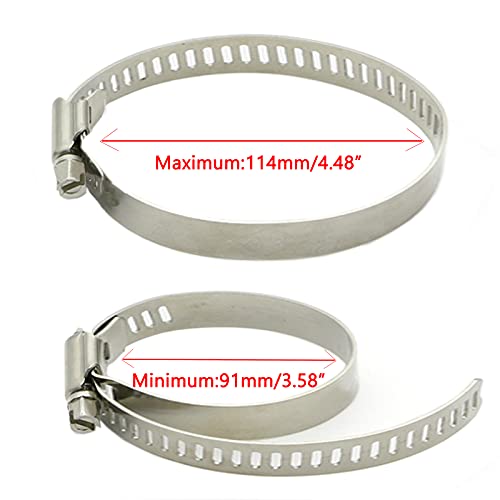 Contenuto della confezione: 2 fascette per tubi di grandi dimensioni, 12 mm di larghezza, regola il diametro da 91 mm a 114 mm. Soddisfa le esigenze di casa, garage, prato e giardino.