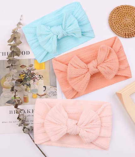 3 Pezzi Fascia Capelli Bambina Fiocchi Fasce Capelli Neonata Elastica Fascia Neonata Capelli Morbido Fasce per Capelli Bambina Fasce Neonata 0-3 Anni per Capelli Rosa Chiaro, Azzurro e Arancio Chiaro