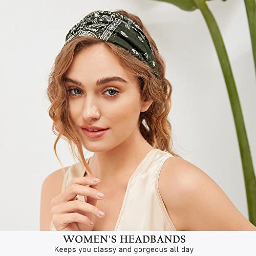 4 pezzi Fascia per Capelli Donna Elegante Cerchietti Elastici Vintage Sportiva Yoga Turbante Morbido Fasce Larga Boho Bandana Multicolore Stampa Accessori per Capelli